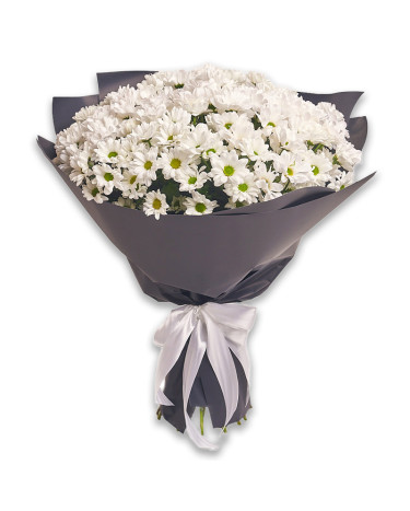 В составе букета присутствует: 25 Белых хризантем Ромашек